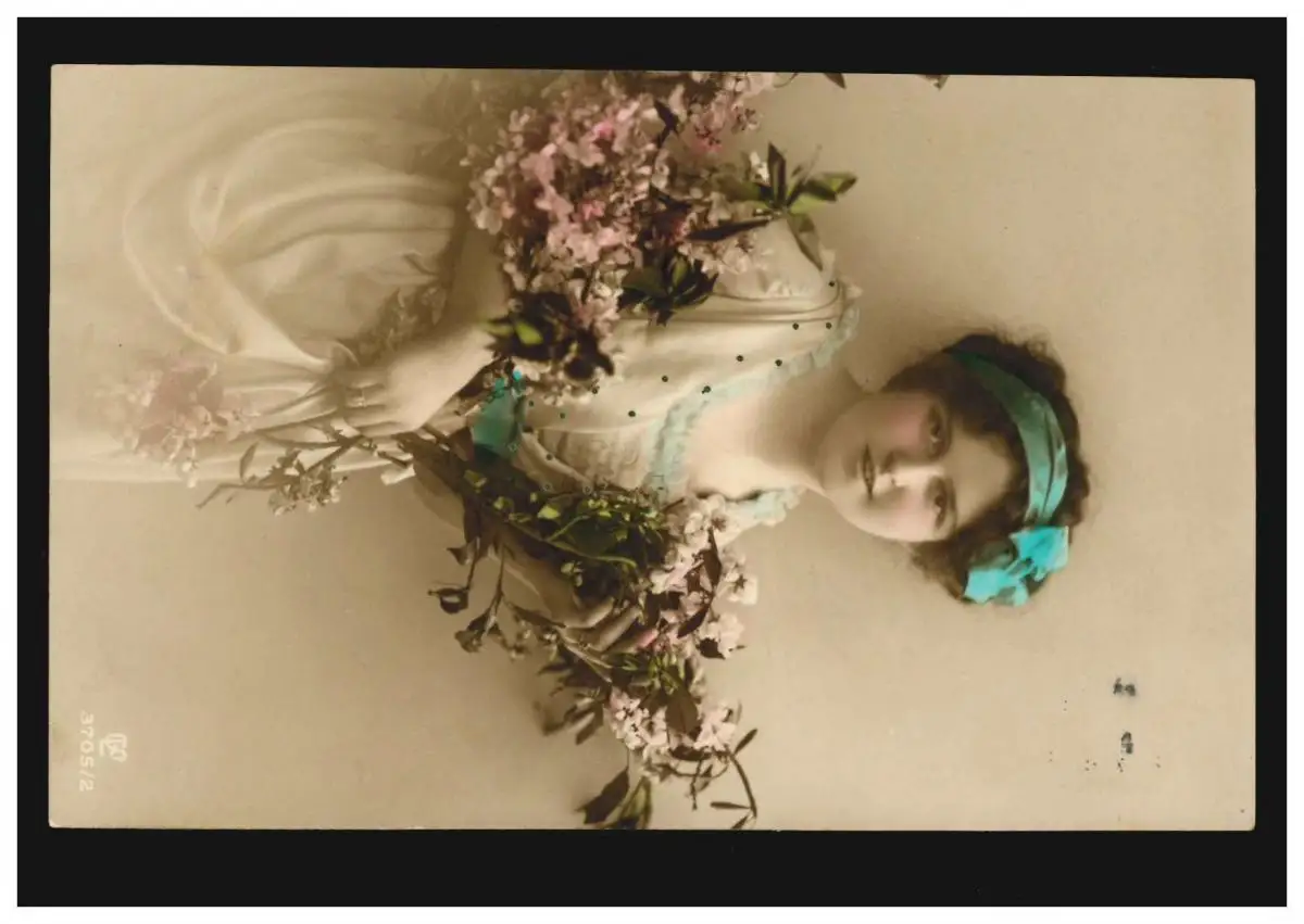 Mode AK femme avec boucle bleue et fleurs, SIGMARINGEN 22101.1912