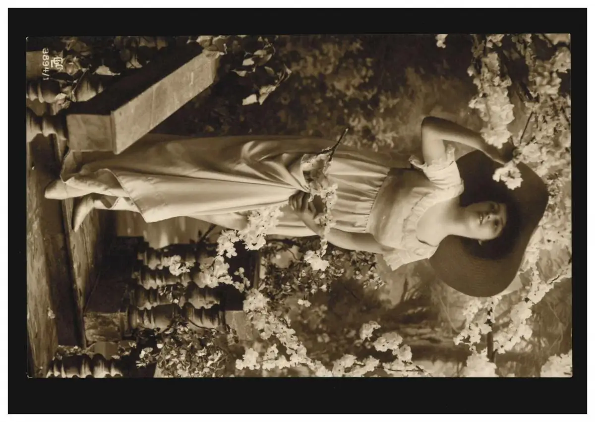 Mode AK femme avec chapeau dans la galerie de fleurs, maison d'édition G.&.L., BRUXELLES 5.12.1912