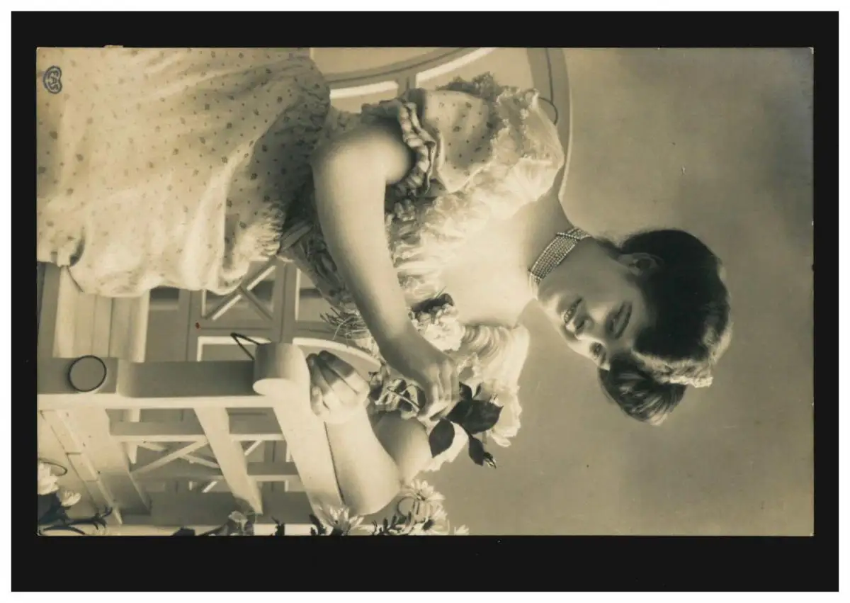 Mode AK femme avec collier et avec Rose, EAS, BURSCHEID 15.1.1909