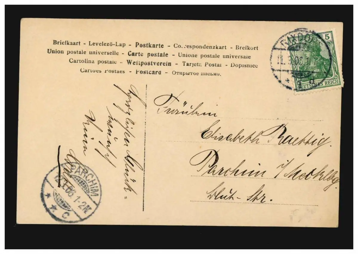 Tampon d'arrivée PARCHIM 12.3.1906 Vérification: original Référence produit: 00000000040654
