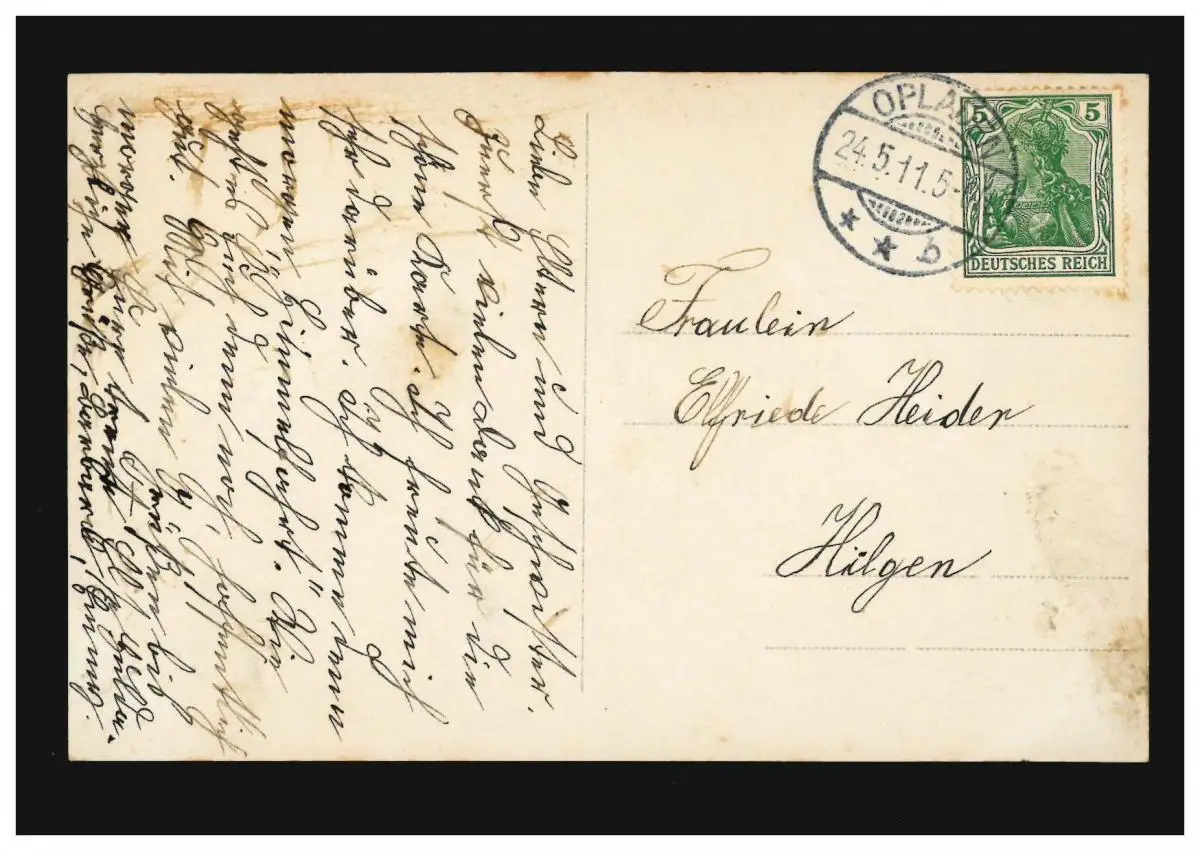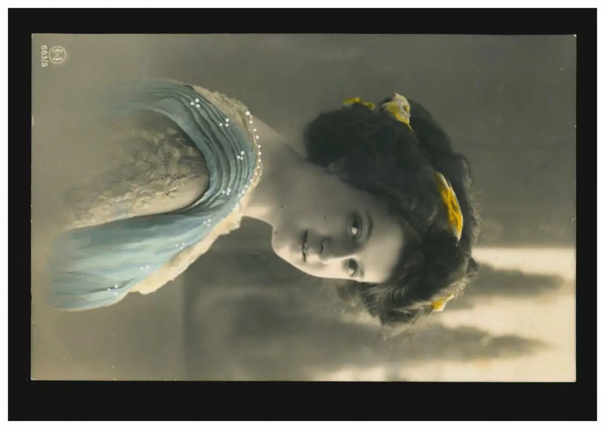 Mode AK femme en robe bleu-blanc et bande de cheveux jaune, opladen 24.5.1911