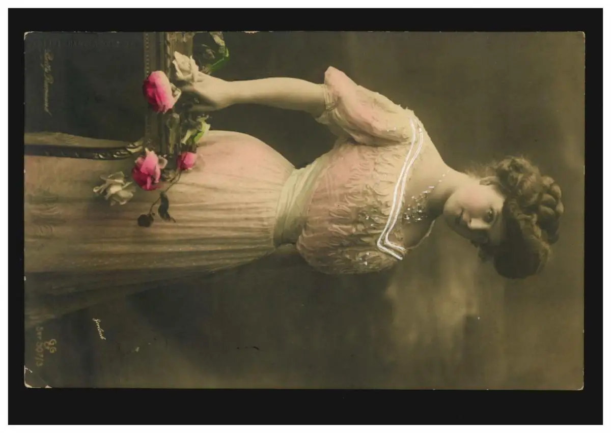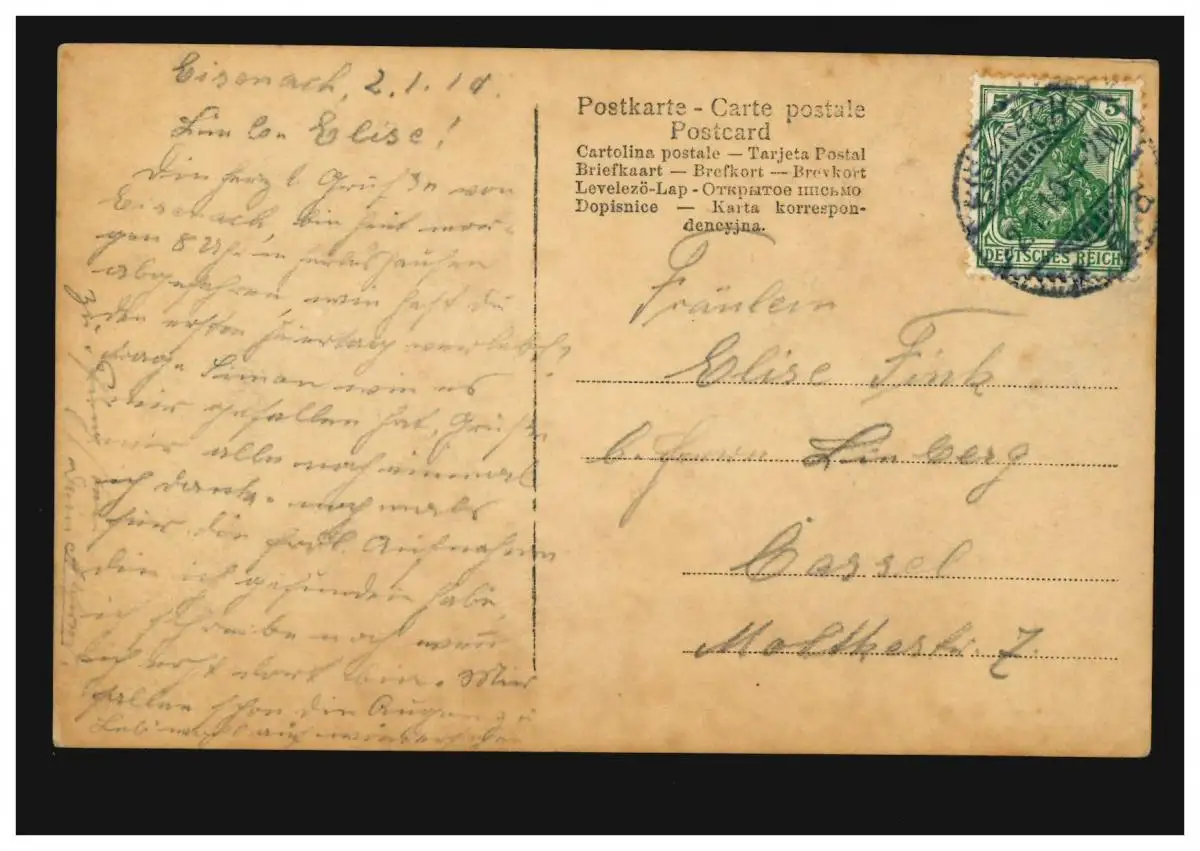 Mode AK femme en robe rose avec roses rouges, EISENACH 2.1.1910