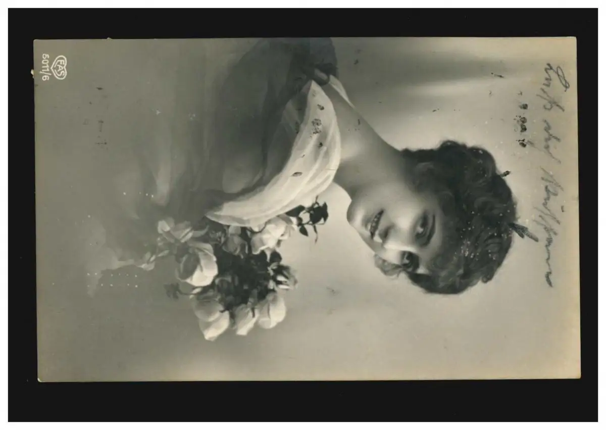 Mode AK portrait femme avec roses, E.A.S., couru 22.9.1912