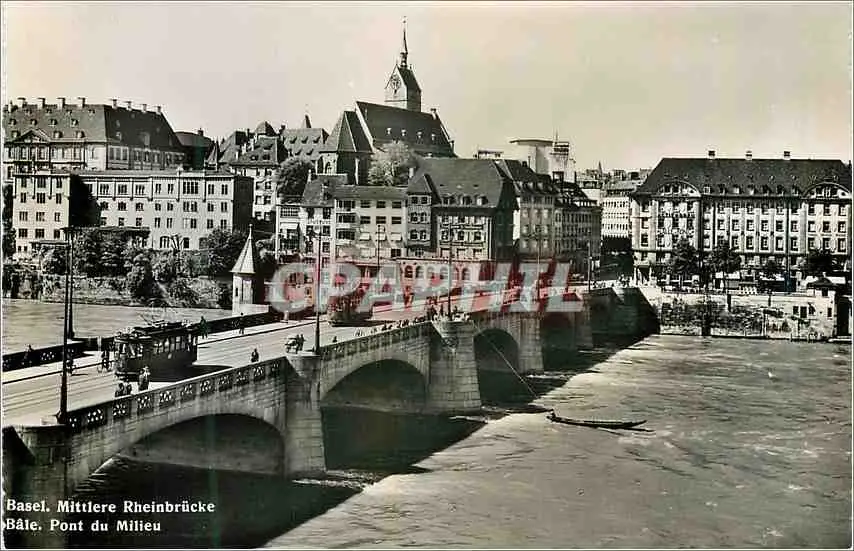 Cartes postales moderne Bale Pont du Milieu Hotel Krafft am Rhein Basel Tramway