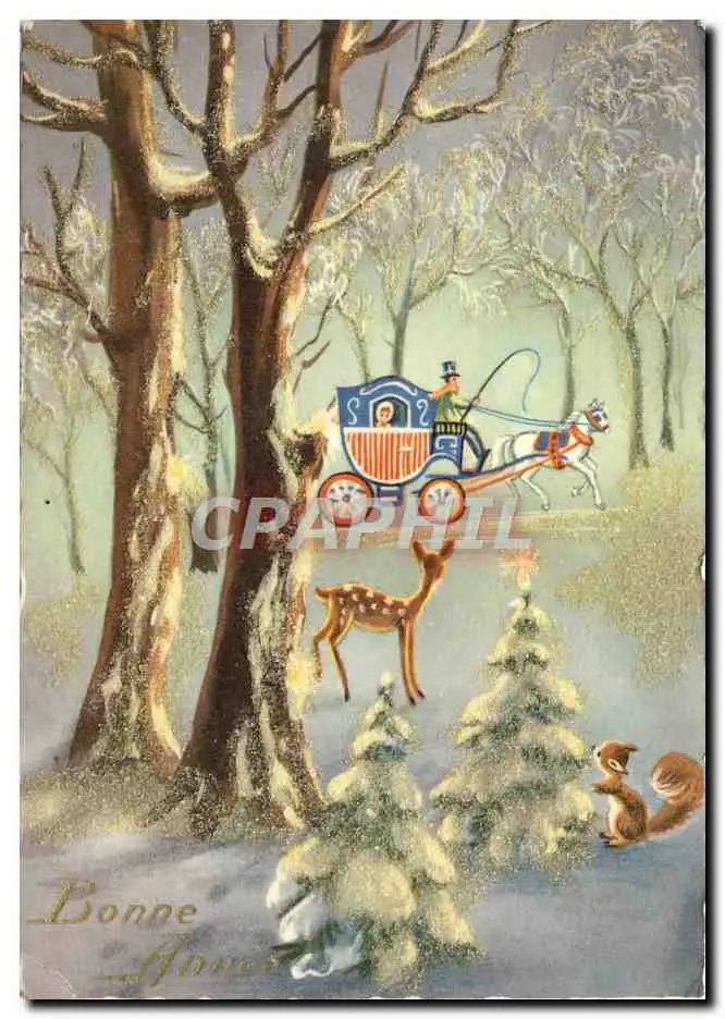 Cartes postales moderne Bonne Annee aleche Cheval Biche Ecureuil
