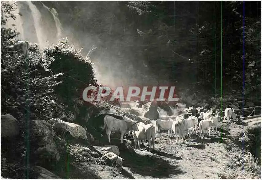 Cartes postales moderne Cauterets La Raillere (Htes Pyr) Devant la Cascade du Lutour Vaches