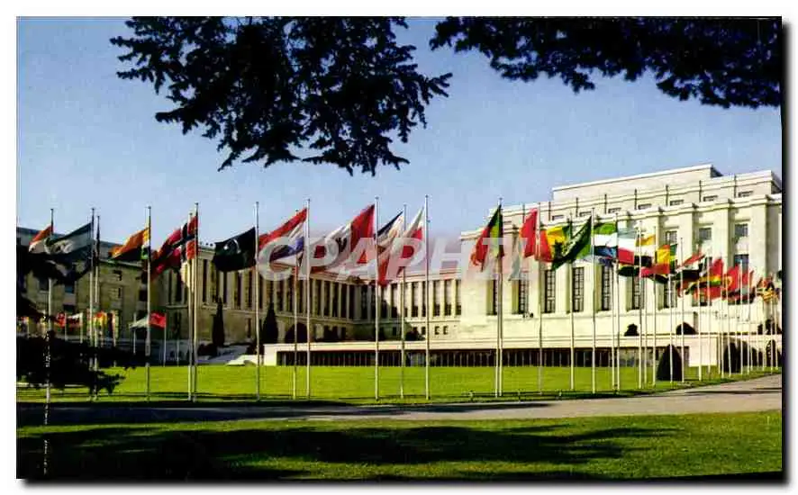 Cartes postales moderne Geneve Palais des Nations Cour d'Honneur et drapeaux des Etats membres