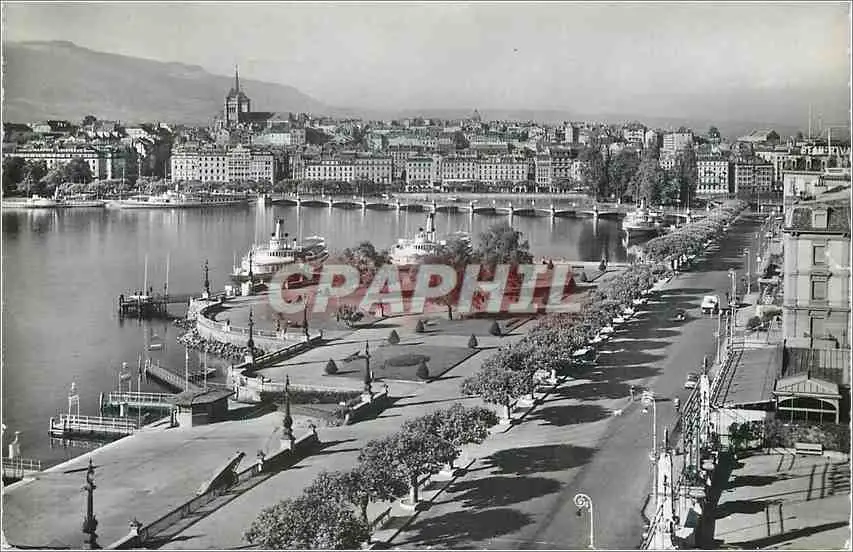Cartes postales moderne Geneve Quai du Mont Blanc et vue sur la Ville Bateaux