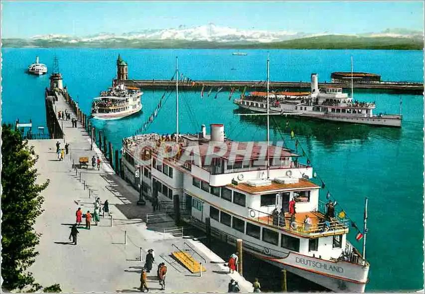 Cartes postales moderne Konstanz Rodensee Hafen mit Schweizer Alpen Bateau