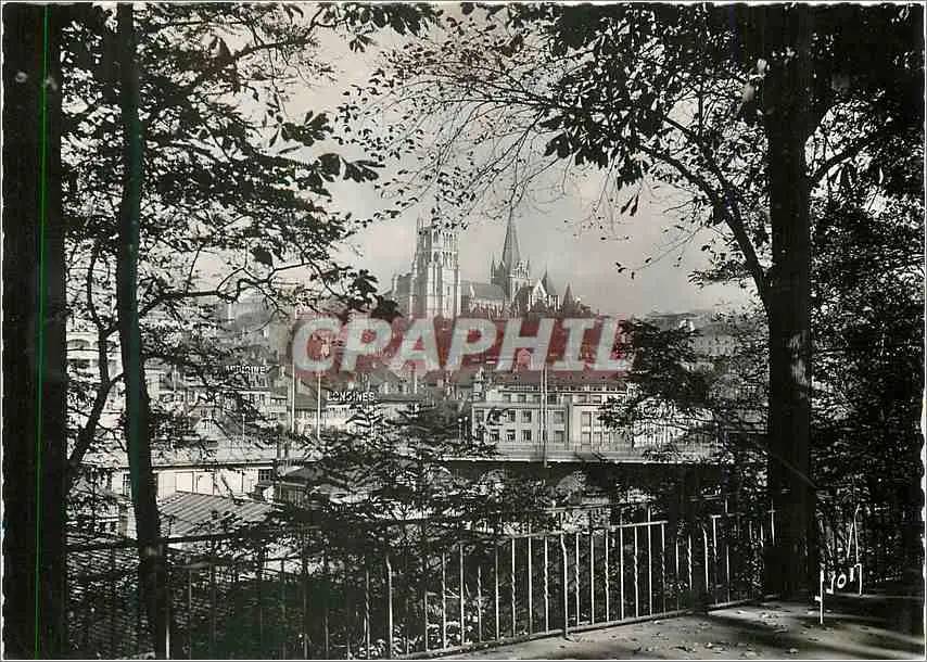 Cartes postales moderne Lausanne (Suisse) La Cathedrale vue a travers les arbres
