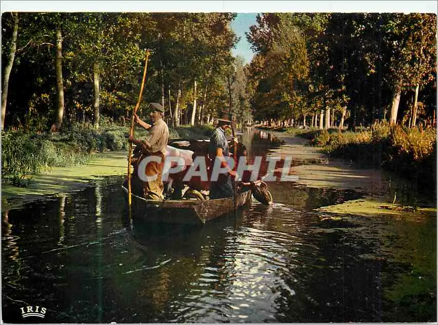 Cartes postales moderne Marais Poitevin Venise Verte Cathedrale de Verdure Entre Coulon et la Garette Transport d'animau