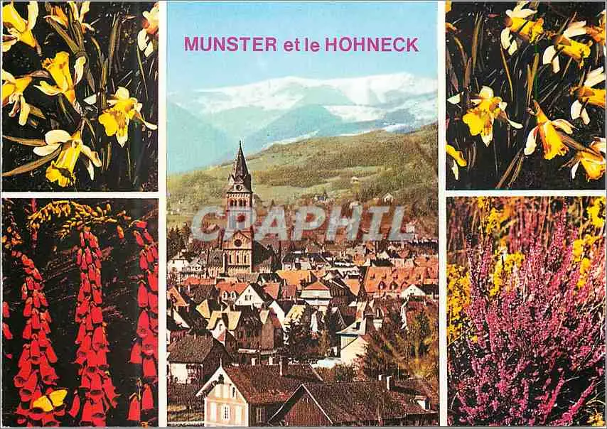 Cartes postales moderne Munster et Au pied du Massif du Hohneck (Altitude 1361 m) Images de France La Ville alsacienne d