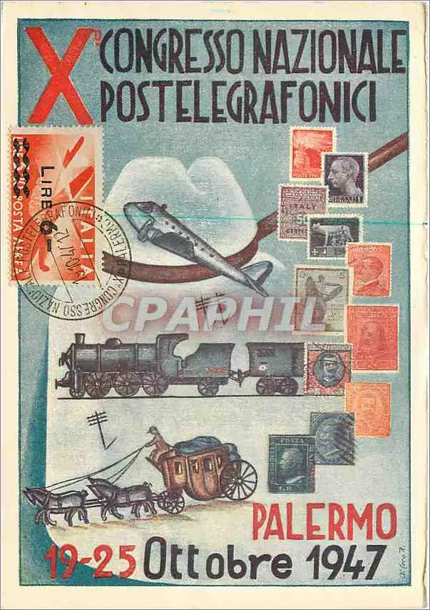 Cartes postales moderne Palermo 1925 oct 1947 Confresso Nazionale Postelegrafonici Timbres Poste