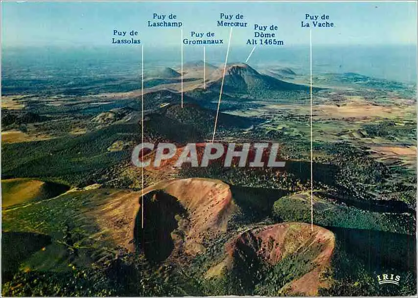 Cartes postales moderne Puy de Dome (alt 1465 m) la Chaine des puys Puy de la Vache et puy de Lassolas