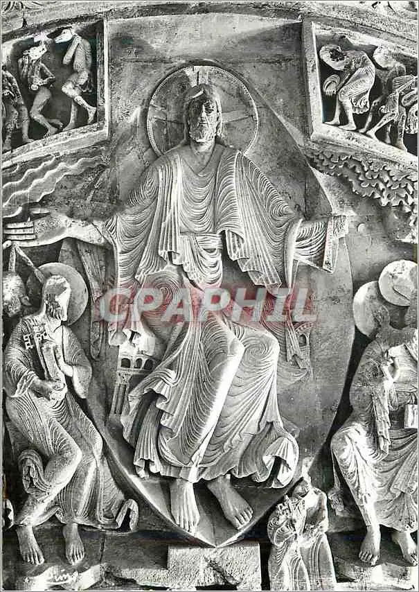 Cartes postales moderne Vezelay (Yonne) Eglise Abbatiale de la Madeleine (XIIe s) Tympan central du Narthex Le Christ en