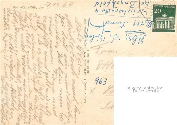 Moemlingen Kategorie Alte Ansichtskarten Postkarten bx93338 Moemlingen Rathaus Schule Kirche Post Moemlingen postalisch gelaufen 1967 Erhaltung siehe scans [WerneD78]