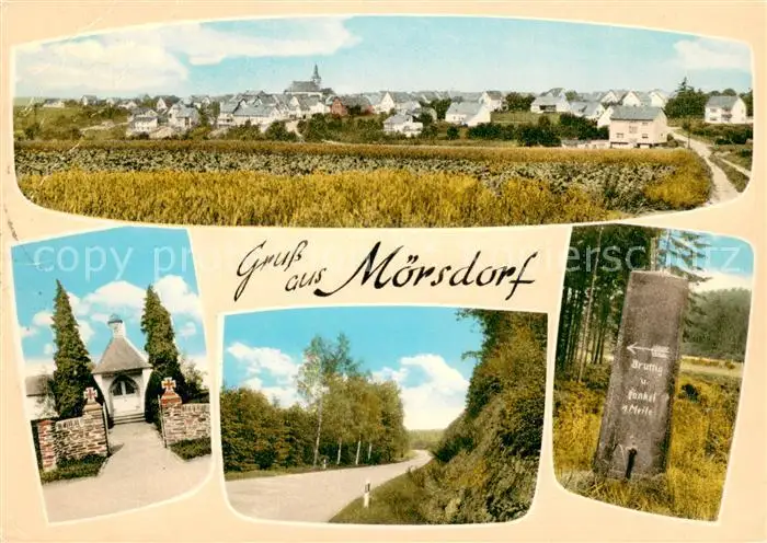 Moersdorf_Hunsrueck Stadtpanorama Kapelle Landstrasse Wegweiser Moersdorf Hunsrueck postalisch gelaufen 1976 Erhaltung siehe scans [FriedD77] Frierer