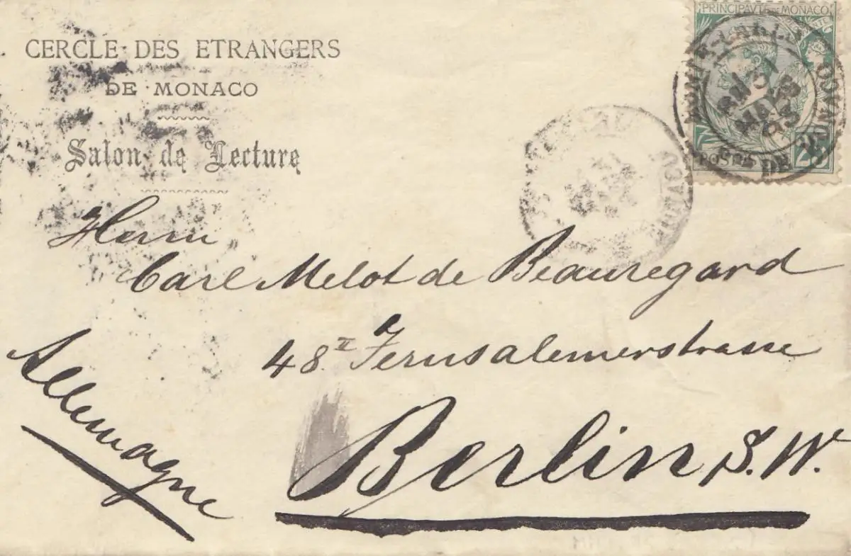 Monaco: 1893: Lettre à Berlin.