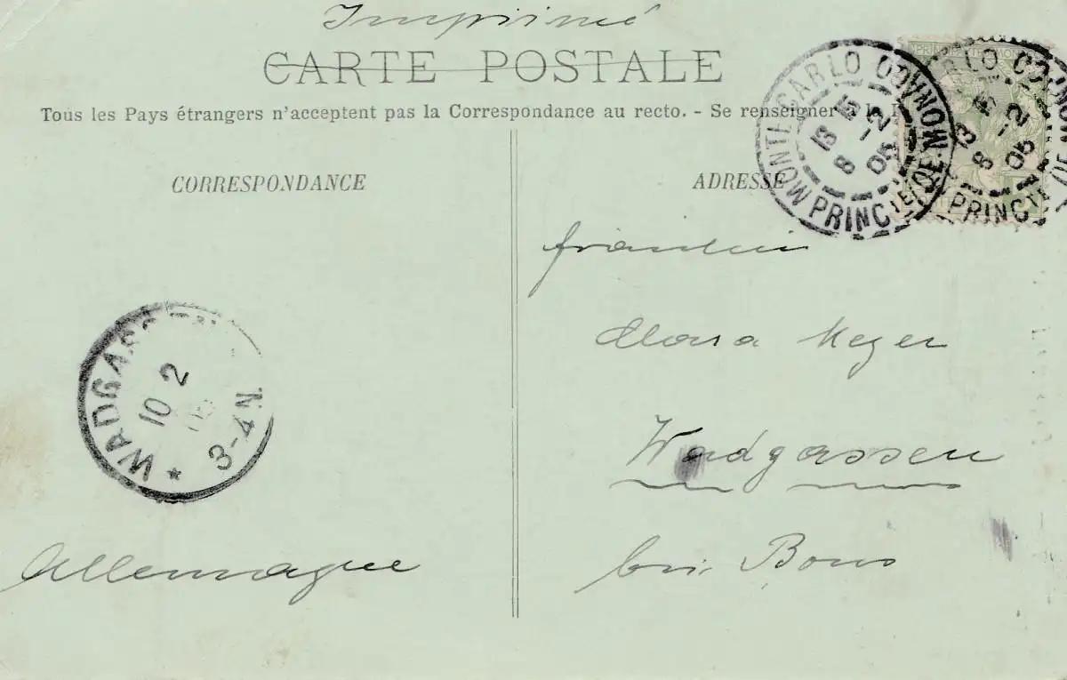 Monaco: 1905: Carte de vue sur l'Allemagne