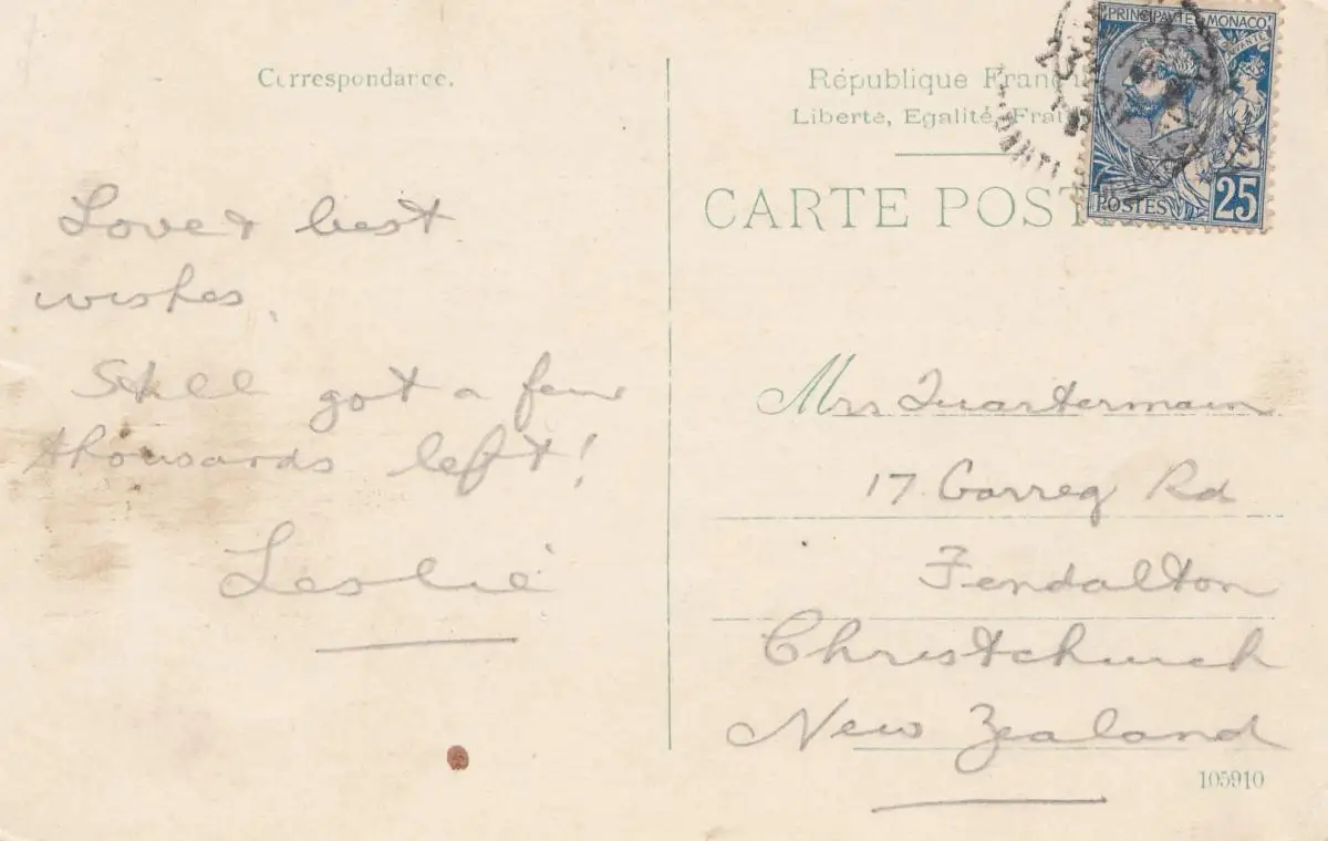 Monaco: carte postale pour New Zealand