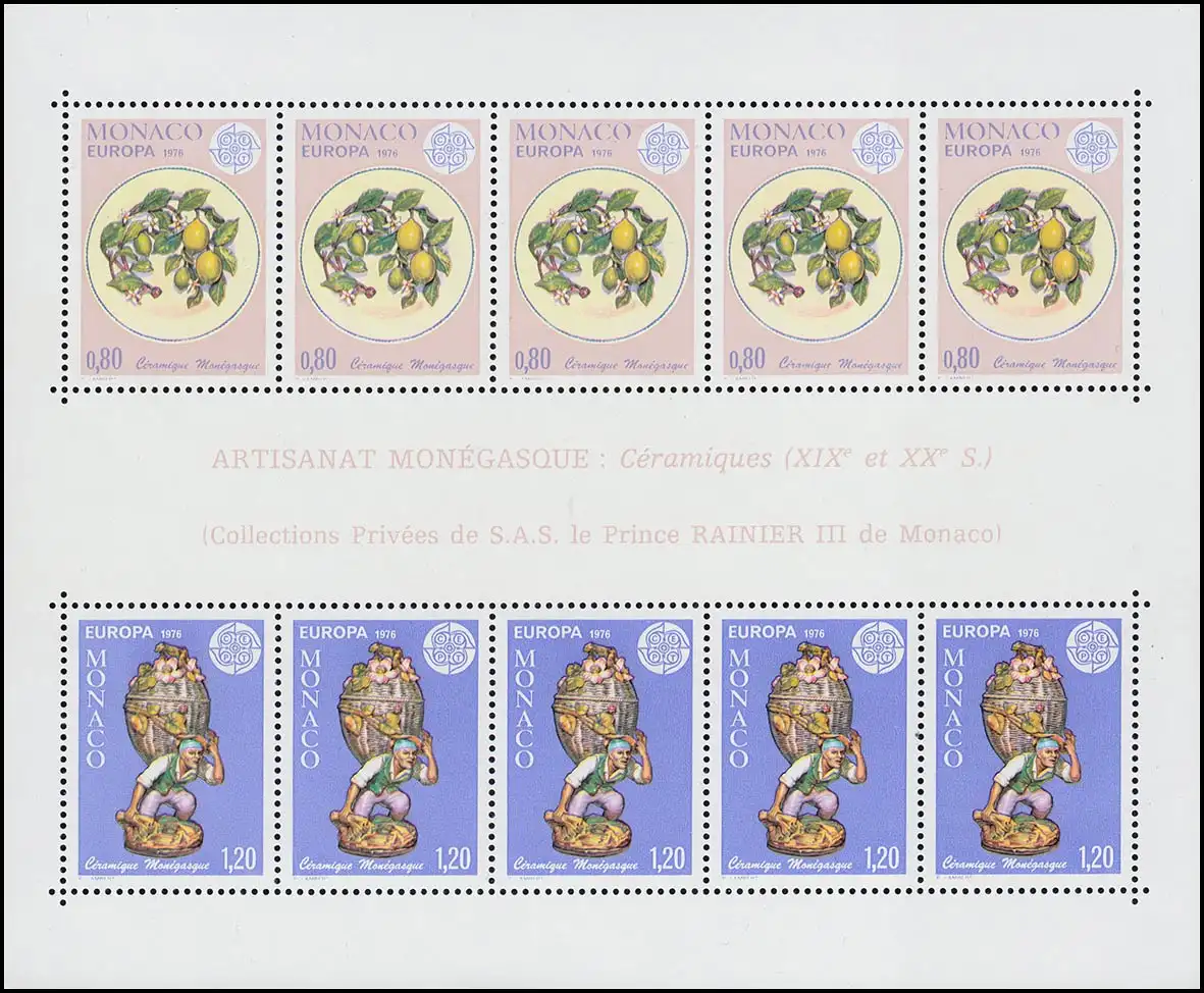 Monaco Block 10 Union européenne: Artisanat 1976 ** / MNH