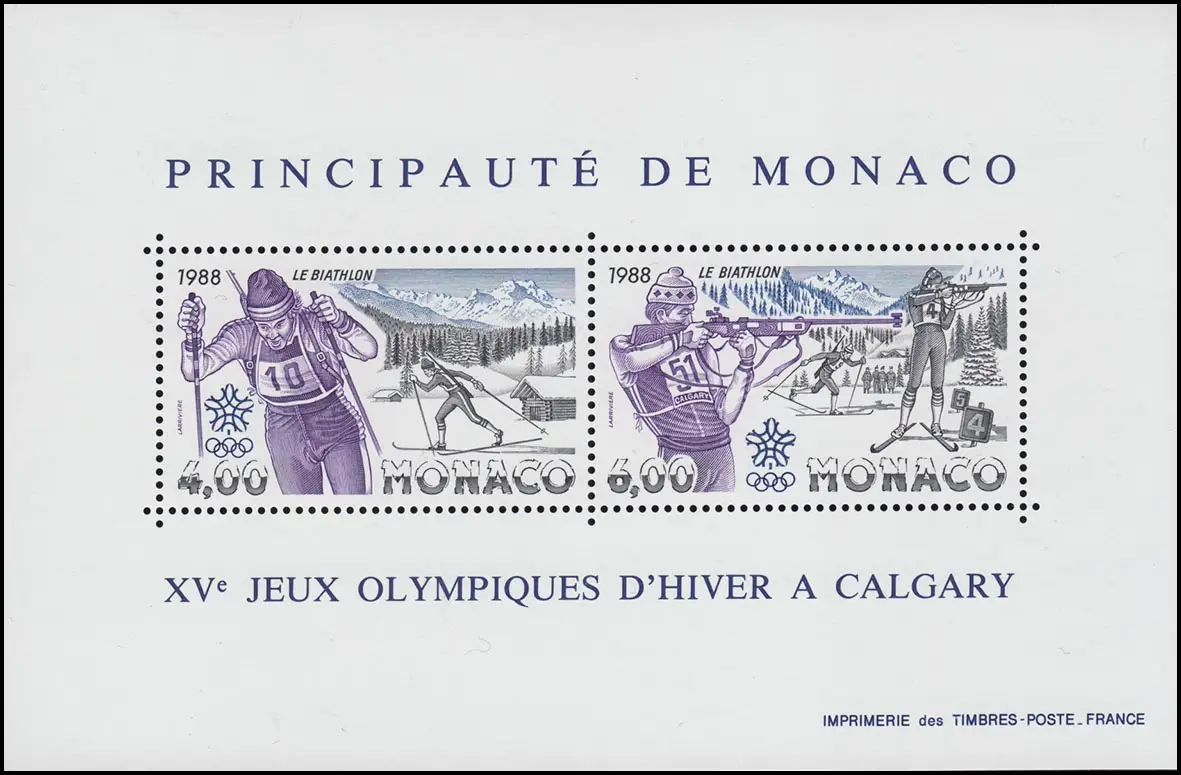 Monaco Block 38 Jeux olympiques d'hiver Calgary 1988 ** / MNH