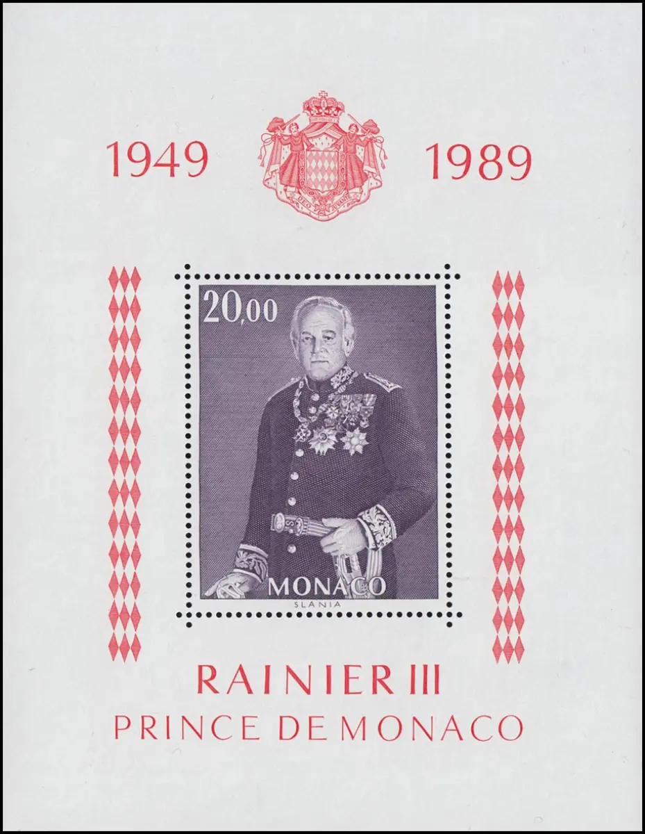 Monaco Block 43 Jubilé du Prince Rainer III 1989 ** / MNH