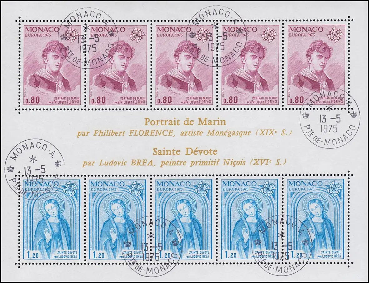 Monaco Block 8 Union européenne / CEPT: peintures 1975, cachet du premier jour MONACO 13.5.75