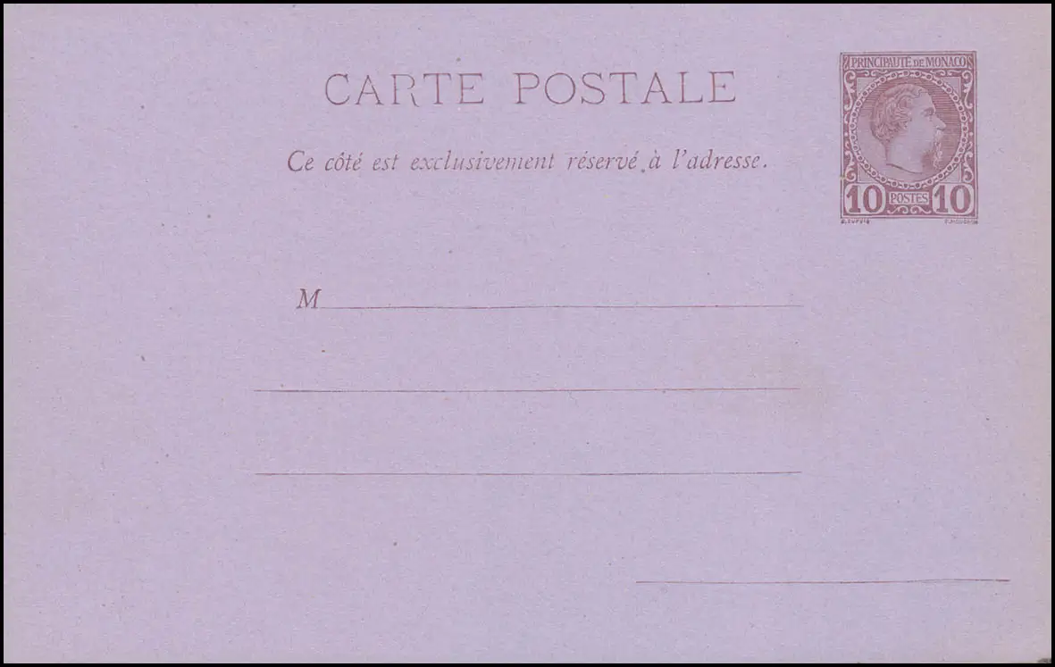 Monaco Carte postale 3 Prince Charles III 10 cent., Carton violet/blanc, ** / MNH
