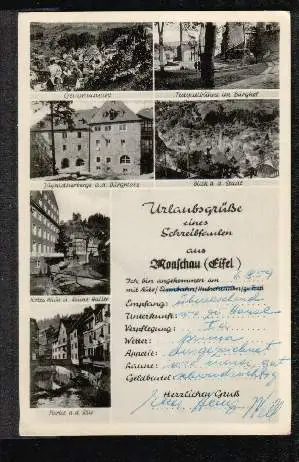 Monschau. Eifel - Gelaufen 1959. Knick. (NPLZ 52156)