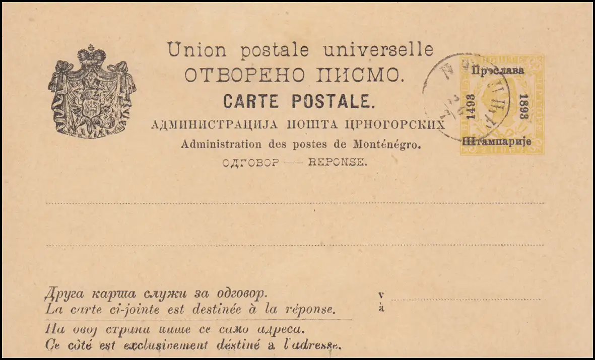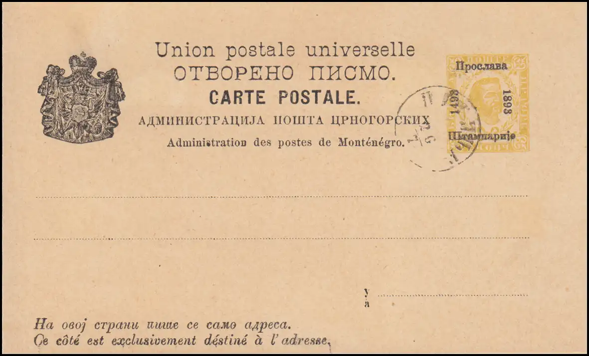 Monténégro Carte postale P 16 Double carte 2/2 Nkr Tampon de complaisance CETINJE 26.7.
