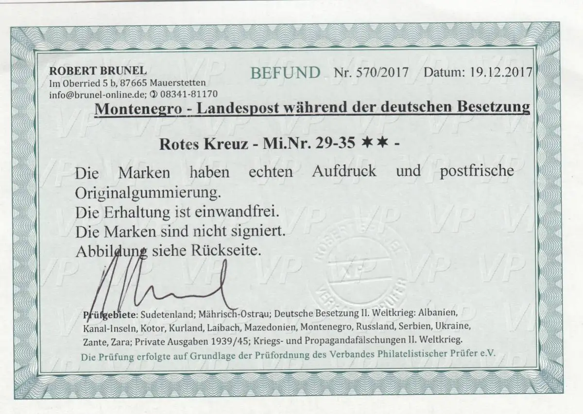 Monténégro: Croix-Rouge, Mi Nr. 29-35, post-fraîchissement