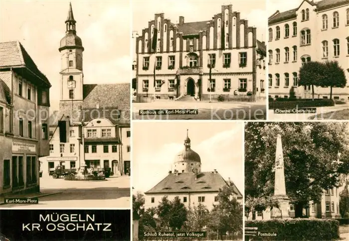 Muegeln_Oschatz Karl Marx Platz Rathaus Goethe Oberschule Postsaeule Schloss Ruhetal