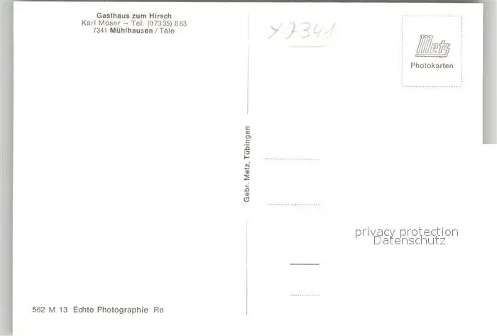 Muehlhausen_Taele Gasthaus zum Hirsch Muehlhausen_Taele postalisch nicht gelaufen nach 1965 Erhaltung siehe scans [PaolaD17] PaolPID1