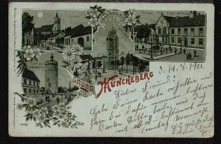 Müncheberg. Gruss aus... - Gelaufen 1901. Knick. (NPLZ 15374)