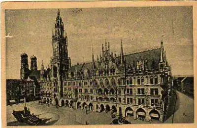 München . Rathaus - Gelaufen 1923. Briefmarke entfernt. (NPLZ 80000)