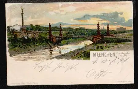 München. Prinzregentenbrücke (Litho) - Gelaufen 1898. (NPLZ 80000)