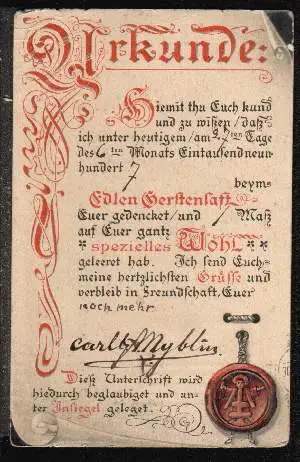 München. Urkunde - Gelaufen 1907. (NPLZ 80000)