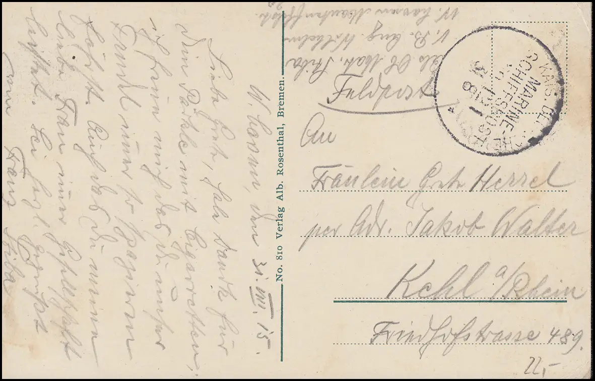 NAVIRE MARINE FRANÇAIS POST No 121 - 31.8.1915 sur AK SMS Impératrice à Kehl/Rh.