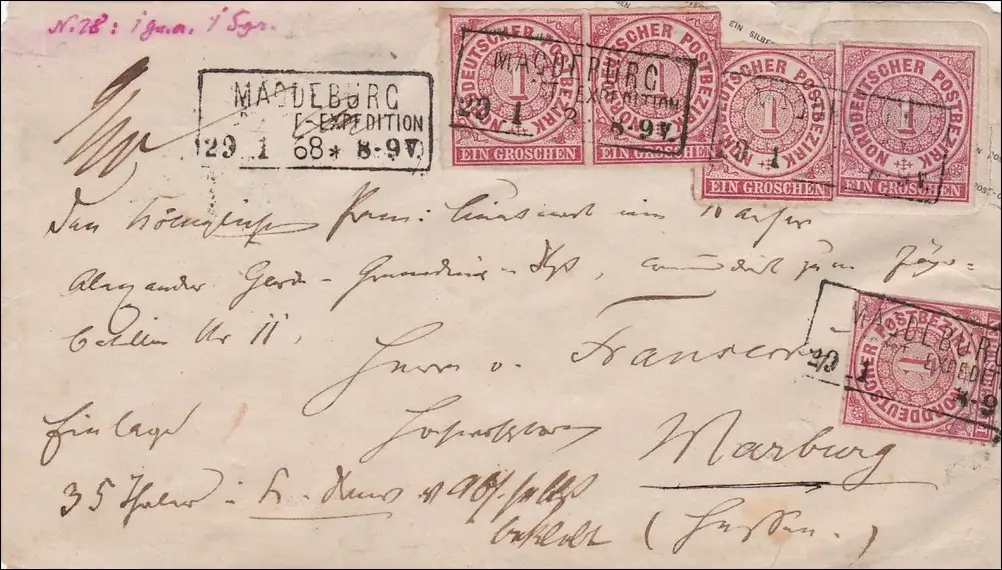 NDP: Envois de marchandises de Magdeburg à Marburg 1868
