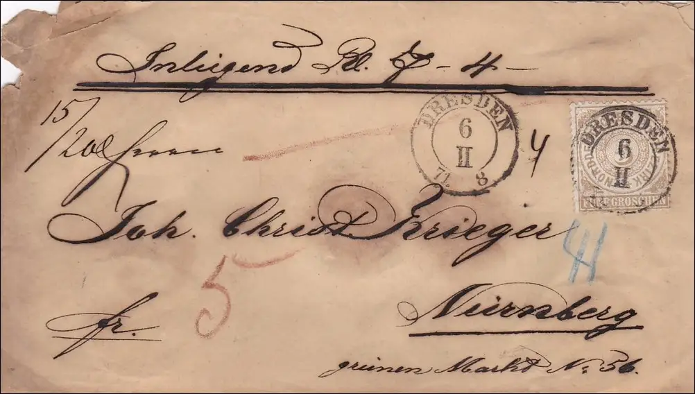 NDP: Lettre de Dresde à Nuremberg avec valeur
