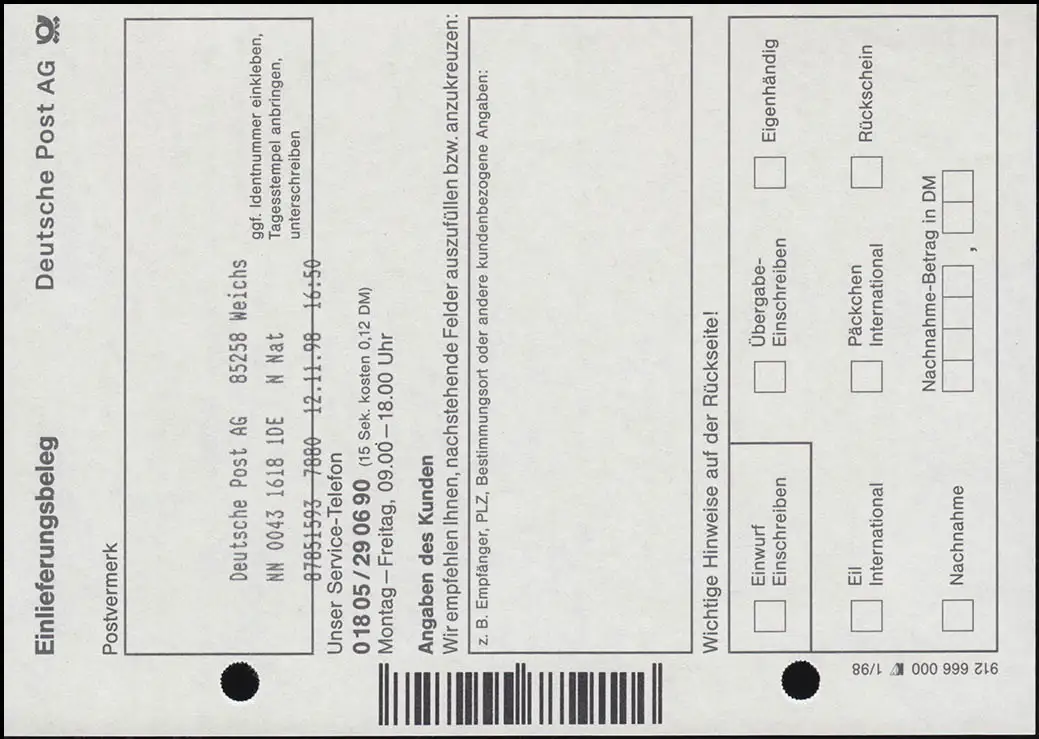 Carte d'acceptation NN: autocollant Premium IMTM 450 WEICHS 12.11.1998