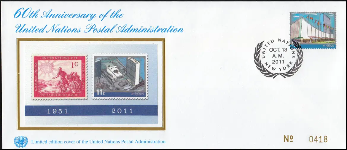 Nations Unies New York 1243 Bâtiment des Nations unies 5 dollars 2011: Lettre de bijoux de marque N.Y. 13.10.11