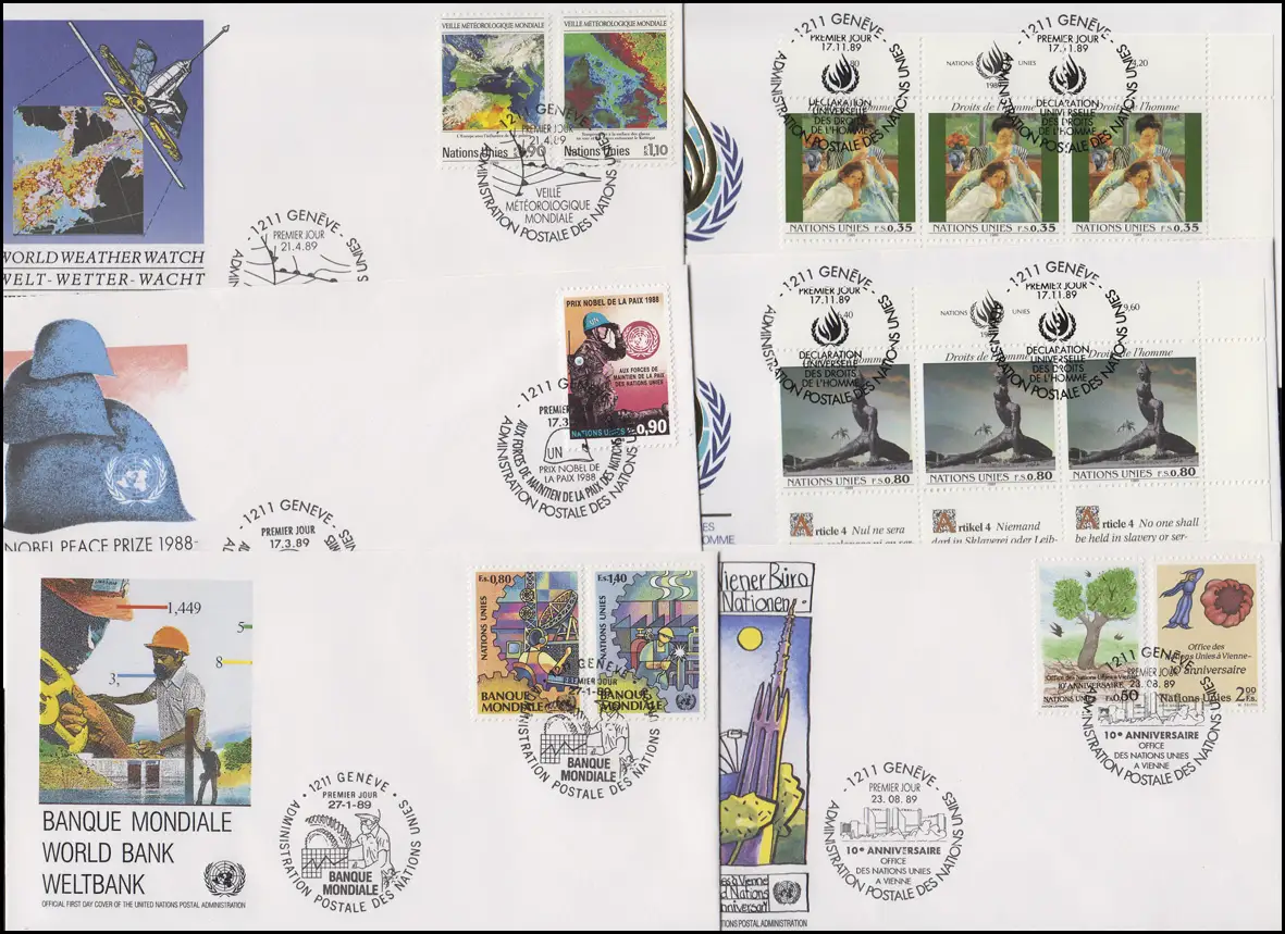 Nations unies Genève 173-181 millésime 1989 (avec 180-181 comme ZD-ER en haut) sur les bijoux FDC GENEF