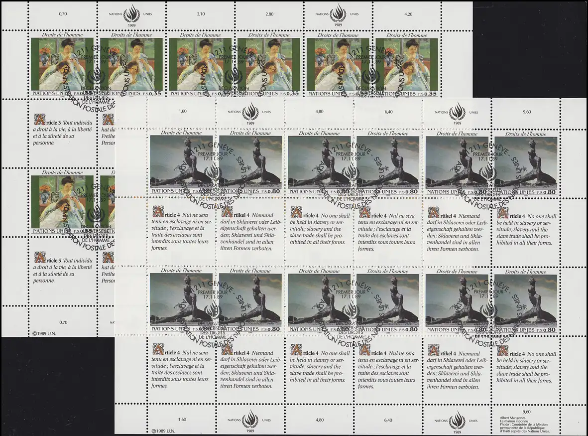 Nations unies Genève 180-181 Déclaration des droits de l'homme I 1989, ensemble des stocks ZD ESSt
