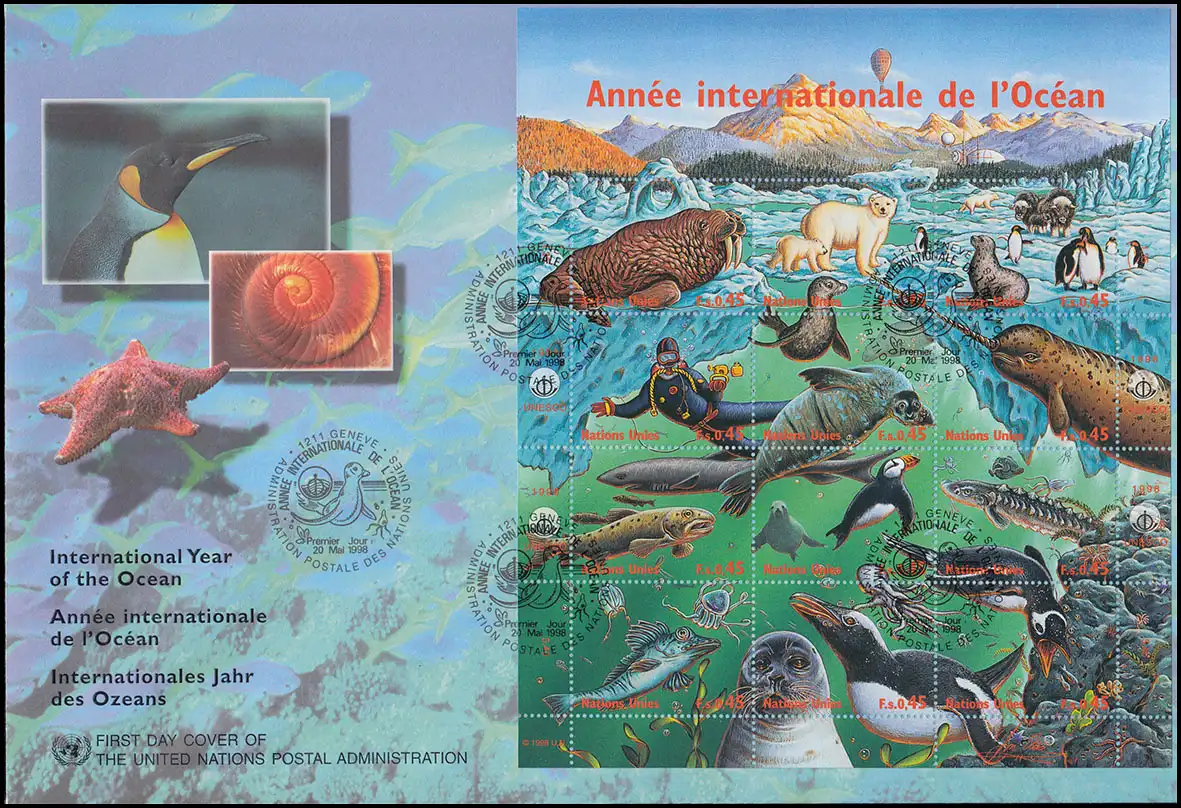 Nations unies Genève 334-345 Année de l'océan 1998: Bogen de compression sur le Bijoux-FDC Genève