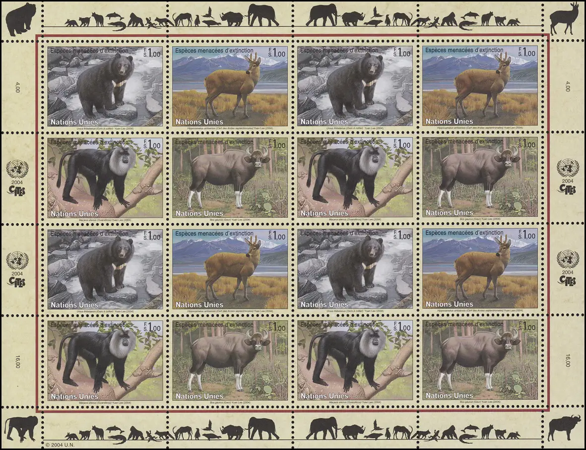 Nations unies Genève 482-485 Espèces menacées XII - mammifères 2004, Bogen ZD **