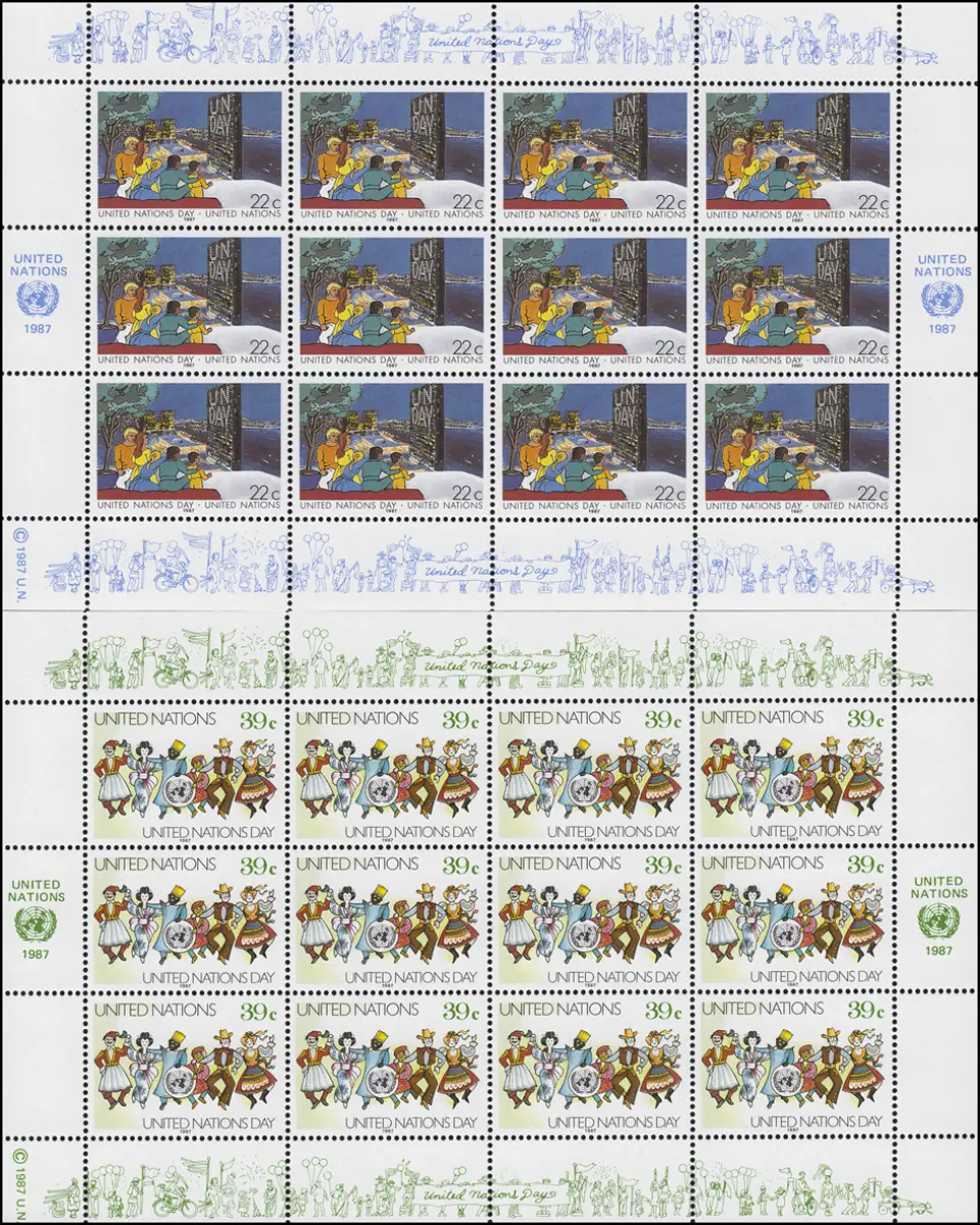 Nations unies New York 540-541 Journée des Nations Unies 1987, petit jeu de feuilles **