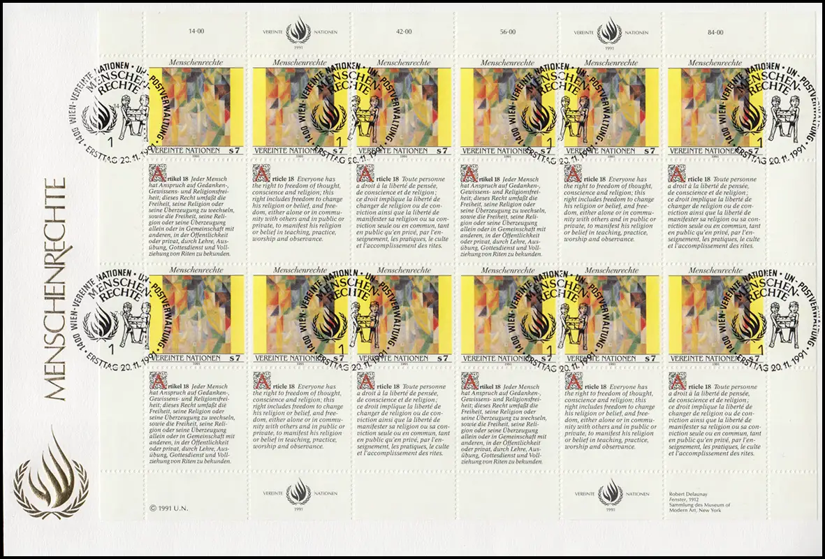 Nations unies Vienne 123-124 Droits de l'homme 1991: jeu de bogues d'impression à 2 bijoux FDC