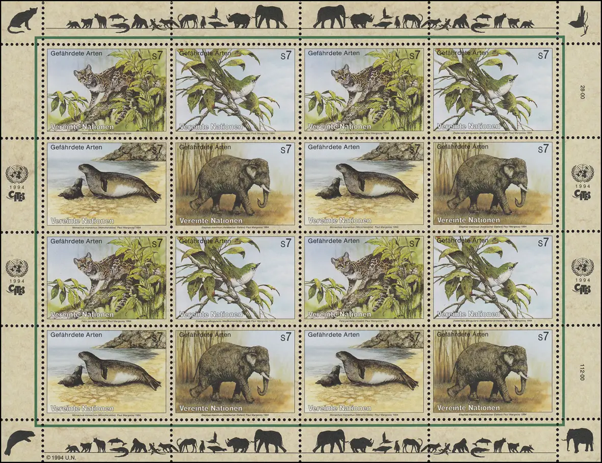 Nations unies Vienne 162-165 Espèces menacées II - Faune 1994, Bogen ZD **